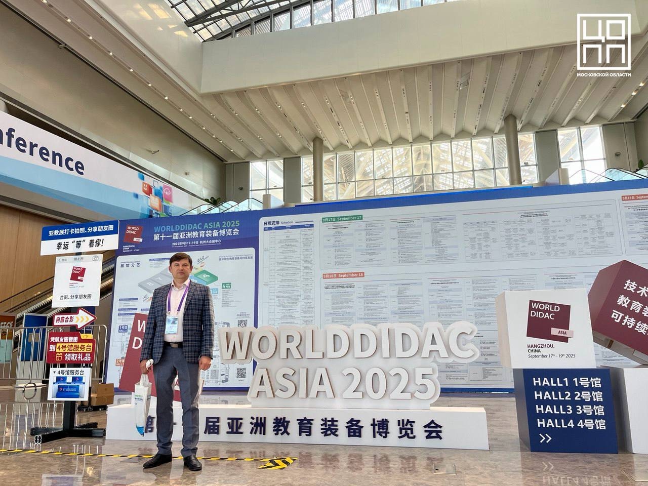 17 сентября 2025 года директор Центра опережающей профессиональной подготовки Московской области Ведута Владимир и заместитель директора по направлению «Молодые профессионалы» Подмосковного колледжа «Энергия» Ковалев Дмитрий в рамках 11-ой Международной выставки по образовательному оборудованию Worlddidac Asia 2025 посетили секцию профессионального образования на площадке Конгрессно-выставочного центра Китая г. Ханчжоу.