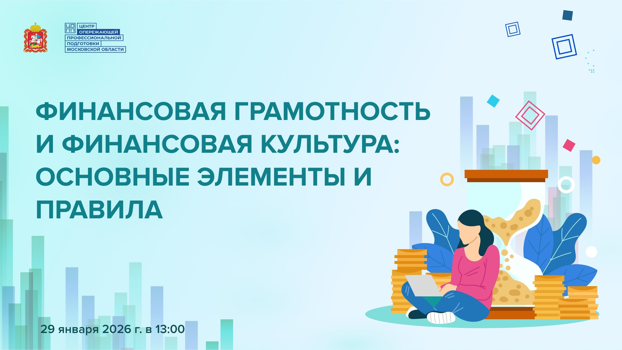 29 января 2026 года Центр опережающей профессиональной подготовки Московской области проведёт семинар по финансовой грамотности для студентов и выпускников колледжей Московской области, в том числе для лиц с ОВЗ и инвалидностью.