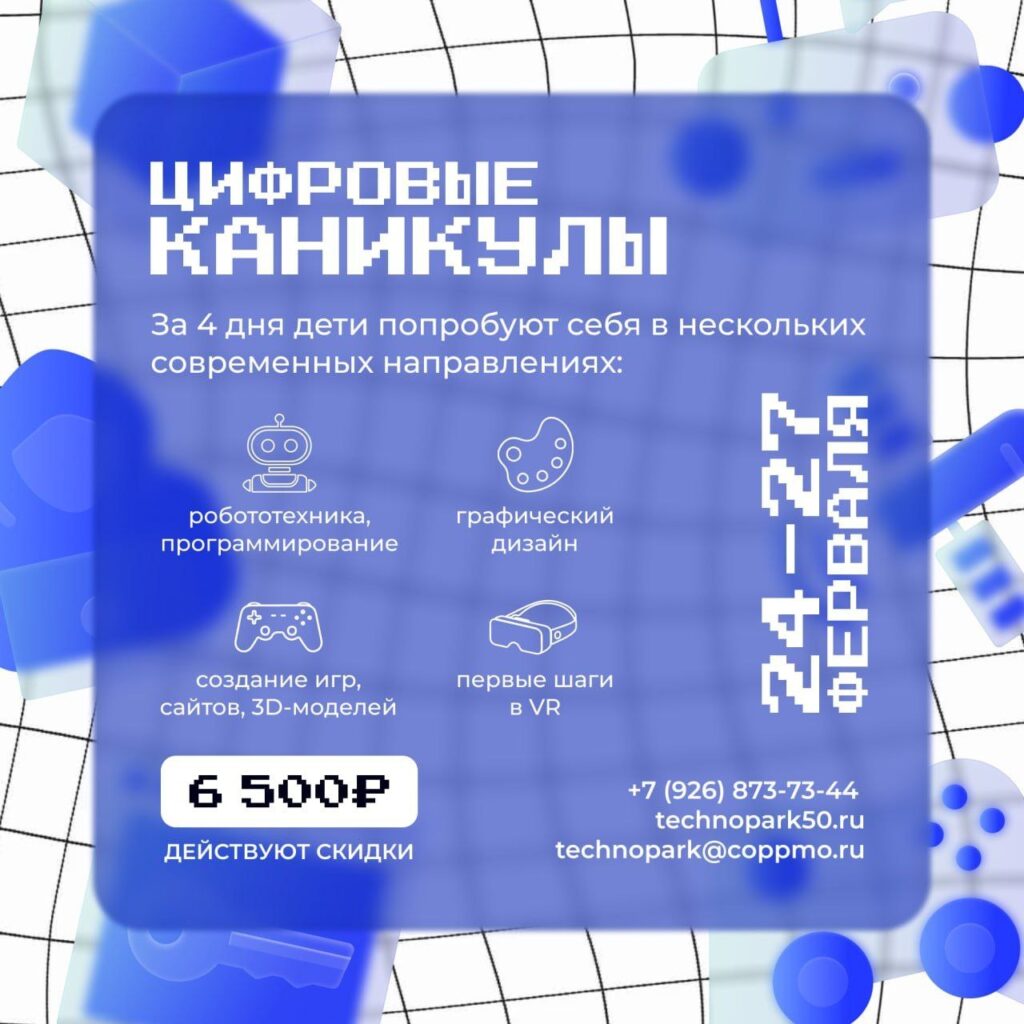 Стоимость: 6 500 ₽ (действуют скидки: technopark50.ru/cifrovye_k...)